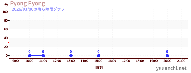 2026/03/06の待ち時間グラフ (Pyong Pyong)