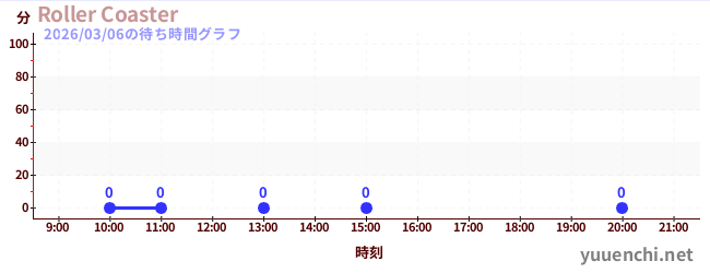 2026/03/06の待ち時間グラフ (ローラーコースター)