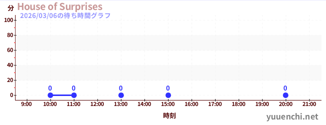 2026/03/06の待ち時間グラフ (House of Surprises)