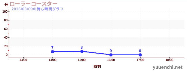2026/03/09の待ち時間グラフ (ローラーコースター)