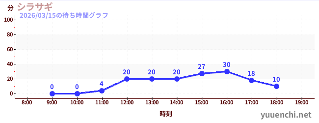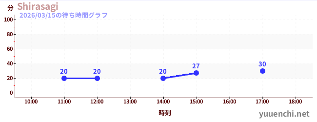 2026/03/15の待ち時間グラフ (Shirasagi)