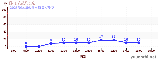 2026/03/15の待ち時間グラフ (ぴょんぴょん)