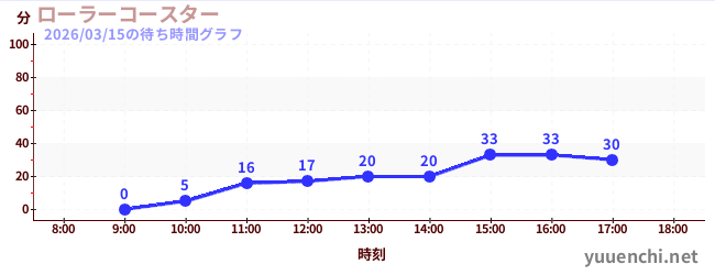 2026/03/15の待ち時間グラフ (ローラーコースター)