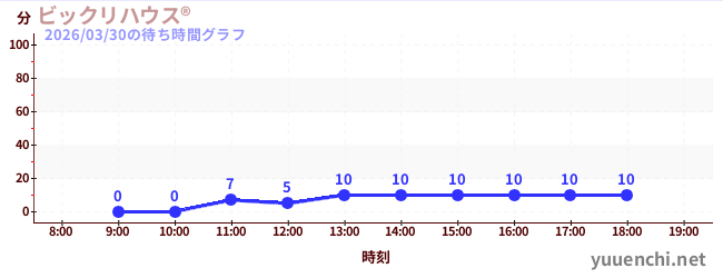 2026/03/30の待ち時間グラフ (ビックリハウス®)