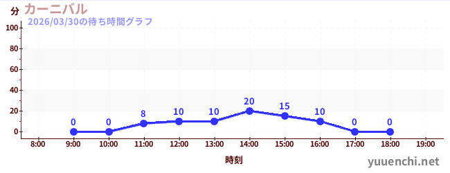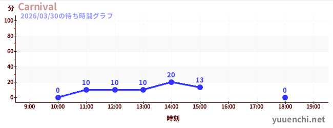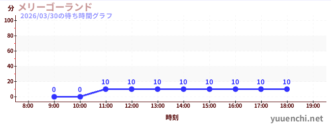 2026/03/30の待ち時間グラフ (メリーゴーランド)