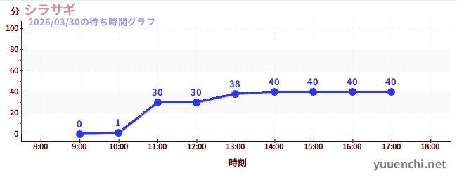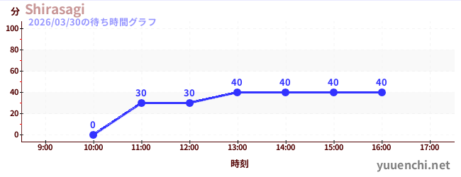 2026/03/30の待ち時間グラフ (Shirasagi)