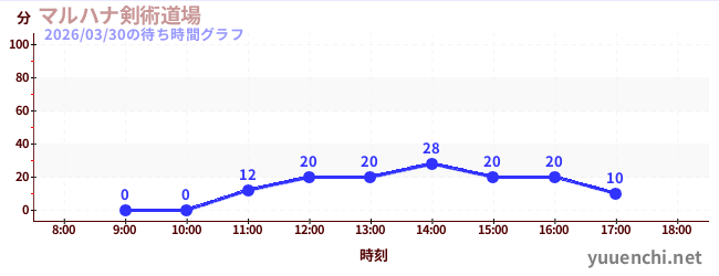 2026/03/30の待ち時間グラフ (マルハナ剣術道場)