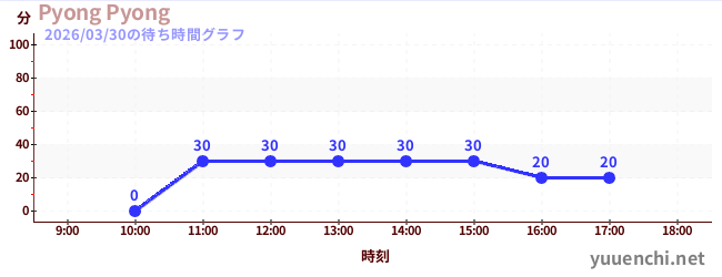 2026/03/30の待ち時間グラフ (Pyong Pyong)