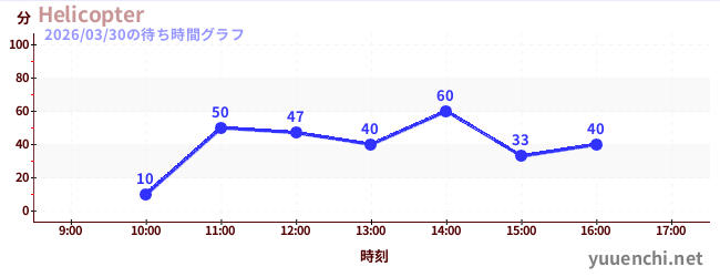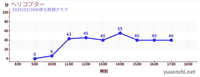2026/03/30の待ち時間グラフ (ヘリコプター)