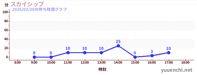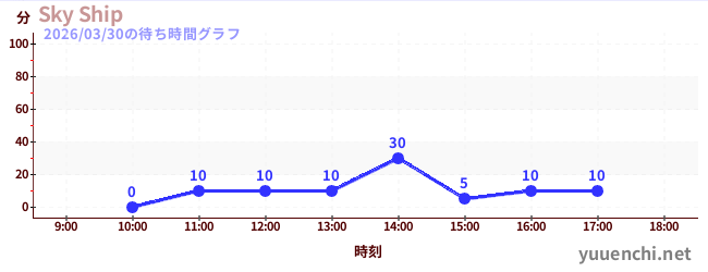 2026/03/30の待ち時間グラフ (Sky Ship)