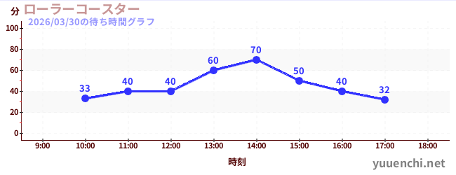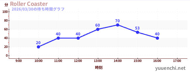 2026/03/30の待ち時間グラフ (ローラーコースター)