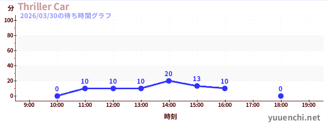 2026/03/30の待ち時間グラフ (Thriller Car)