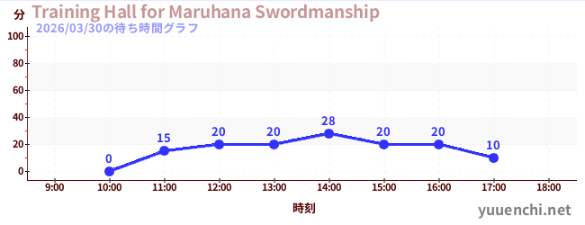 2026/03/30の待ち時間グラフ (Training Hall for Maruhana Swordmanship)