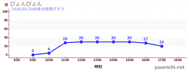 2026/03/30の待ち時間グラフ (ぴょんぴょん)