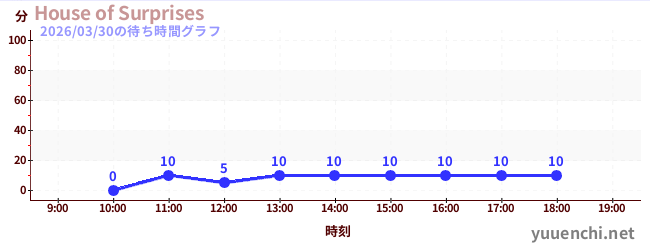 2026/03/30の待ち時間グラフ (House of Surprises)