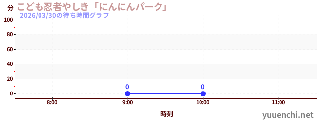 2026/03/30の待ち時間グラフ (こども忍者やしき「にんにんパーク」)