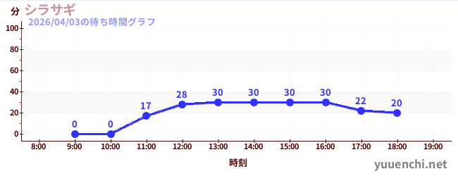2026/04/03の待ち時間グラフ (シラサギ)