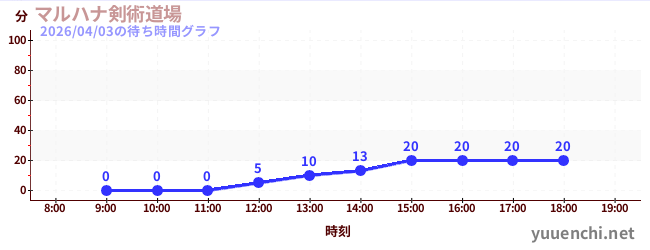2026/04/03の待ち時間グラフ (マルハナ剣術道場)