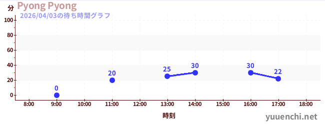 2026/04/03の待ち時間グラフ (Pyong Pyong)
