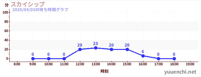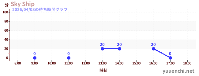 2026/04/03の待ち時間グラフ (Sky Ship)