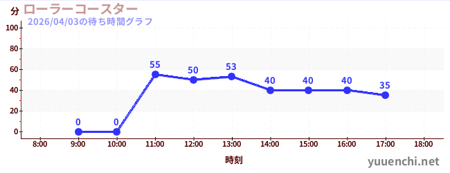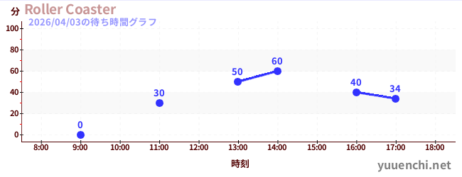 2026/04/03の待ち時間グラフ (ローラーコースター)