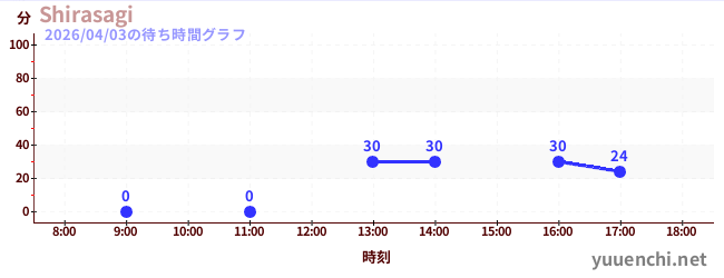 2026/04/03の待ち時間グラフ (Shirasagi)