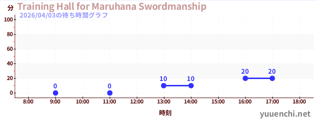 2026/04/03の待ち時間グラフ (Training Hall for Maruhana Swordmanship)