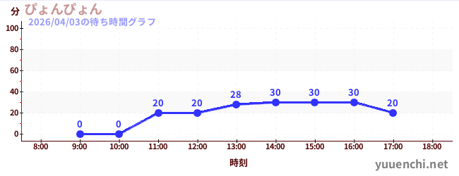 2026/04/03の待ち時間グラフ (ぴょんぴょん)