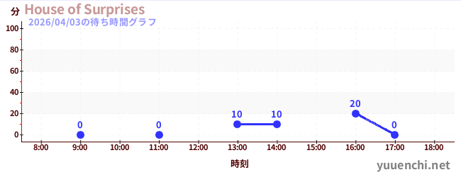 2026/04/03の待ち時間グラフ (House of Surprises)