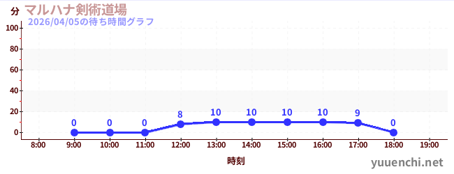 2026/04/05の待ち時間グラフ (マルハナ剣術道場)