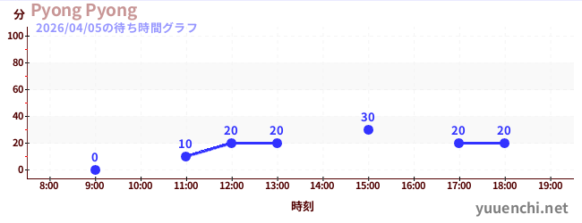 2026/04/05の待ち時間グラフ (Pyong Pyong)