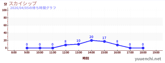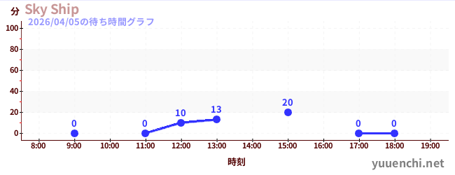 2026/04/05の待ち時間グラフ (Sky Ship)