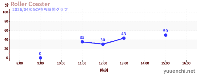 2026/04/05の待ち時間グラフ (Roller Coaster)