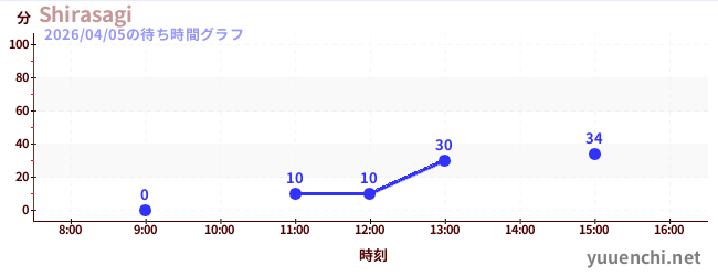 2026/04/05の待ち時間グラフ (Shirasagi)