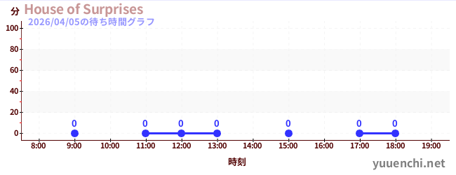 2026/04/05の待ち時間グラフ (House of Surprises)