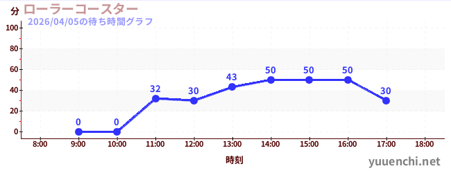 2026/04/05の待ち時間グラフ (ローラーコースター)