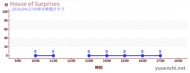 2026/04/27の待ち時間グラフ (House of Surprises)
