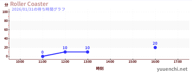2026/01/31の待ち時間グラフ (ローラーコースター)