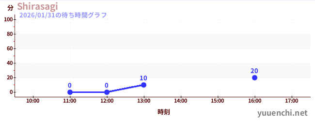 2026/01/31の待ち時間グラフ (Shirasagi)