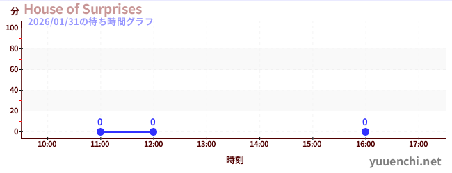 2026/01/31の待ち時間グラフ (House of Surprises)