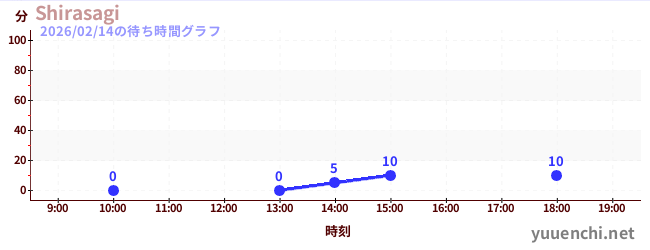 2026/02/14の待ち時間グラフ (Shirasagi)