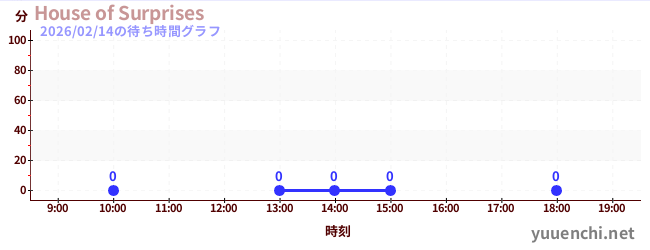 2026/02/14の待ち時間グラフ (House of Surprises)