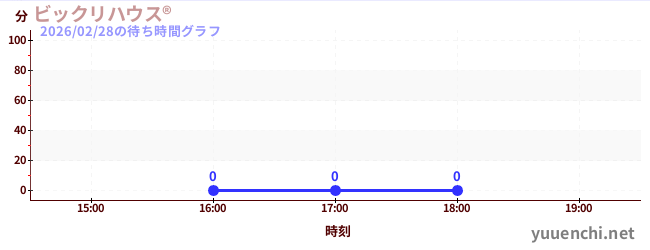 2026/02/28の待ち時間グラフ (ビックリハウス®)