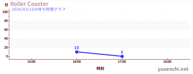 2026/03/16の待ち時間グラフ (ローラーコースター)