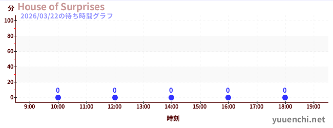 2026/03/22の待ち時間グラフ (House of Surprises)