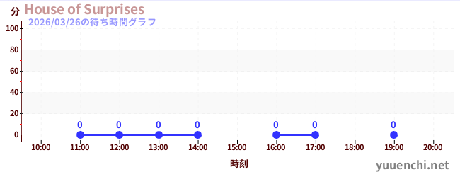 2026/03/26の待ち時間グラフ (House of Surprises)