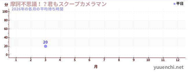2026年の各月の平均待ち時間 (摩訶不思議!?君もスクープカメラマン)