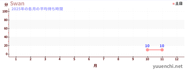 2025年の各月の平均待ち時間 (パノラマ時間旅行)