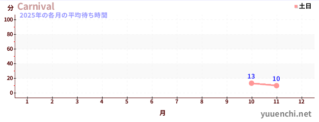 2025年の各月の平均待ち時間 (メリーゴーランド)