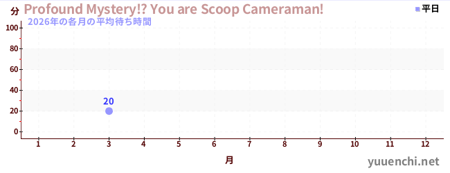 2026年の各月の平均待ち時間 (Profound Mystery!? You are Scoop Cameraman!)